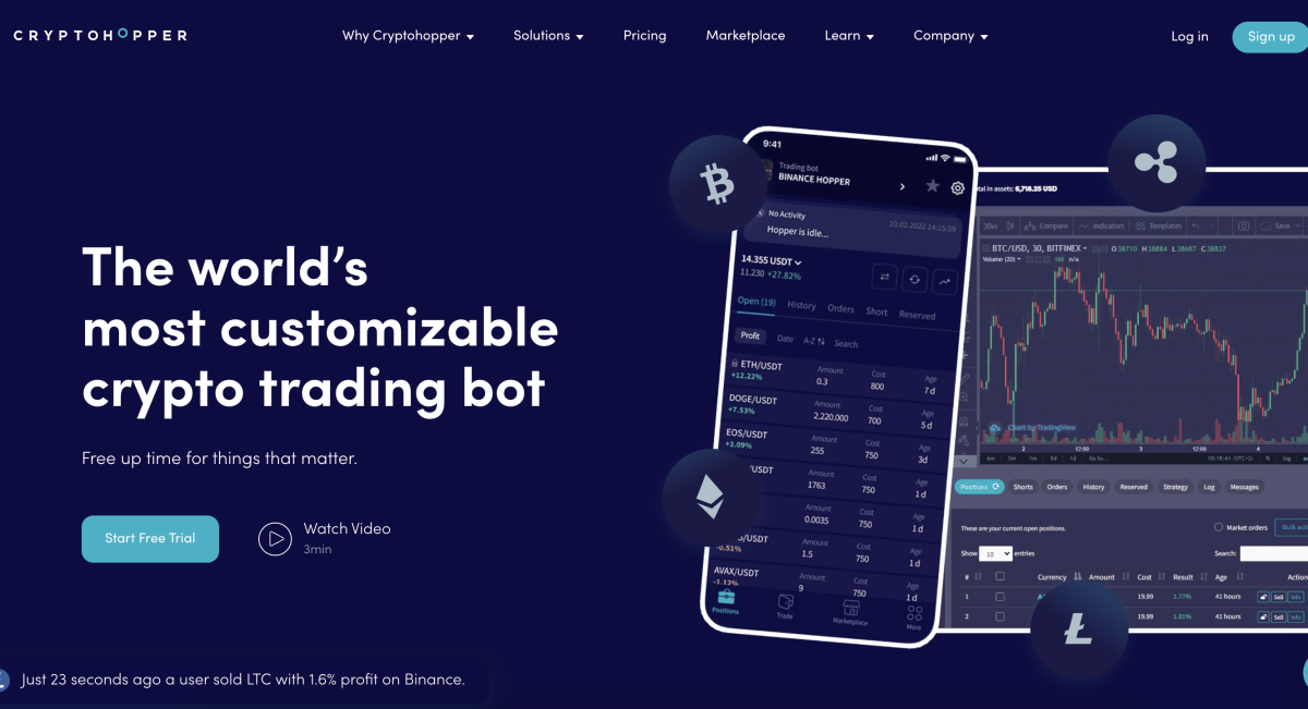 کریپتوهاپر Cryptohopper یک ربات ترید ارزهای دیجیتال مبتنی بر هوش مصنوعی است که به کاربران امکان میدهد تا معاملات خود را در صرافیهای مختلف به صورت خودکار انجام دهند. این پلتفرم به عنوان یک راه حل جامع برای ترید خودکار شناخته میشود و ابزارها و ویژگیهای متنوعی را برای معاملهگران با سطوح تجربه مختلف ارائه میدهد.